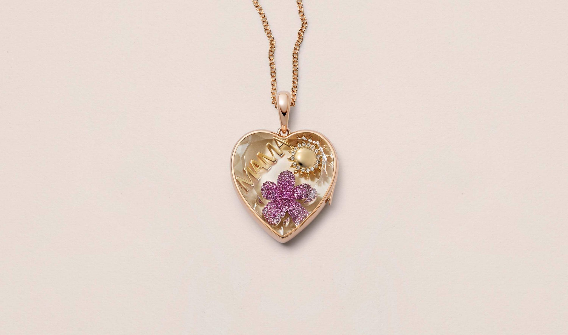 Where memories find their perfect sanctuary, our personalised Large Heart locket, exquisitely crafted in 14k solid rose gold, unveils a world of possibilities. Designed to house your expanding narrative, it becomes part of you, worn every day, layered beautifully. It grows richer with every meaningful charm, whilst our signature clasp provides effortless security, and the faceted crystal allows your evolving story to catch light from every angle.