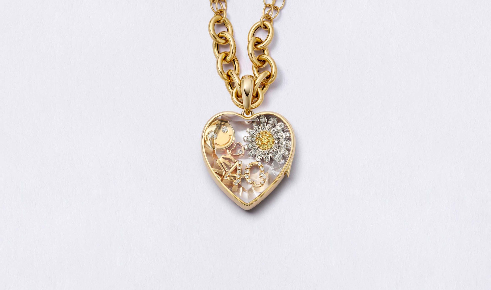 Where memories find their perfect sanctuary, our personalised Large Heart locket, exquisitely crafted in 14k solid gold, unveils a world of possibilities. Designed to house your expanding narrative, it becomes part of you, worn every day, layered beautifully. It grows richer with every meaningful charm, whilst our signature clasp provides effortless security, and the faceted crystal allows your evolving story to catch light from every angle.