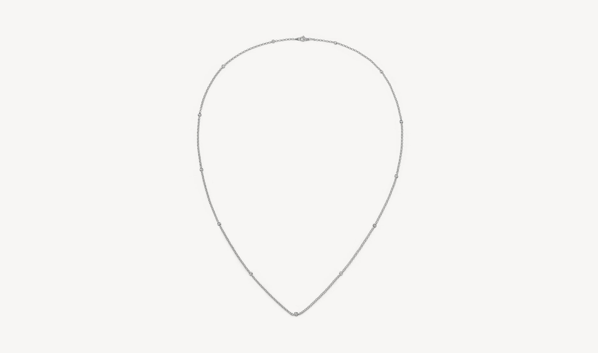The Diamond Chain is that investment piece that effortlessly mixes with all your favourite jewellery and is a seamless addition to any collection for future generations, but you can enjoy it first. Crafted in 18k white gold, the 26" style sparkles with thirteen individually set F VVS diamonds. A versatile chain that goes well with all of our Locket collections.