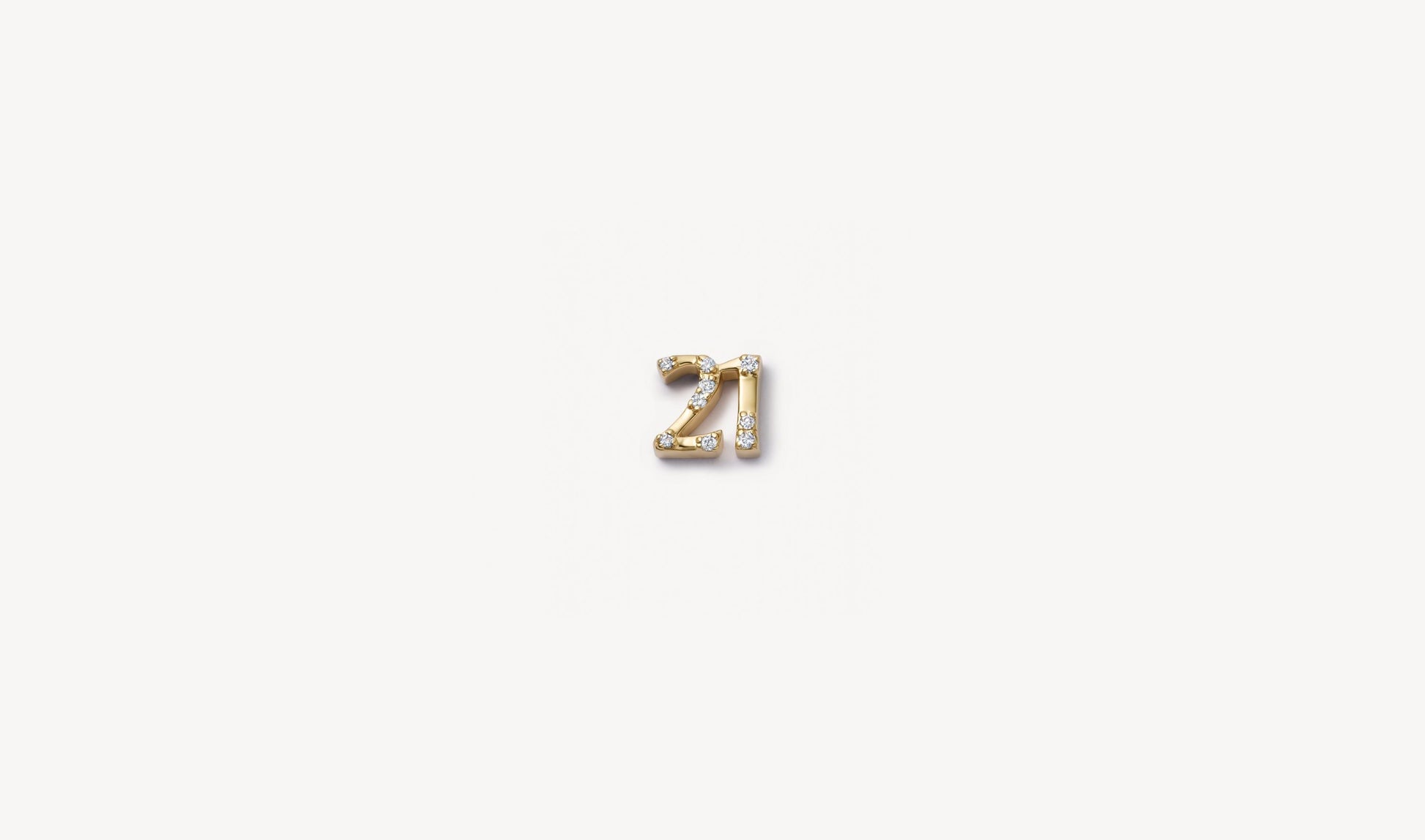 Mark the iconic 21st with this emblem of freedom and discovery. Our 21 Charm celebrates the milestone that transforms how the world sees her and how she sees herself. Handcrafted in 18k solid gold with brilliant diamonds, a momento for when the world opens up for the woman who is ready to claim her place. This charm fits inside our medium and large lockets.