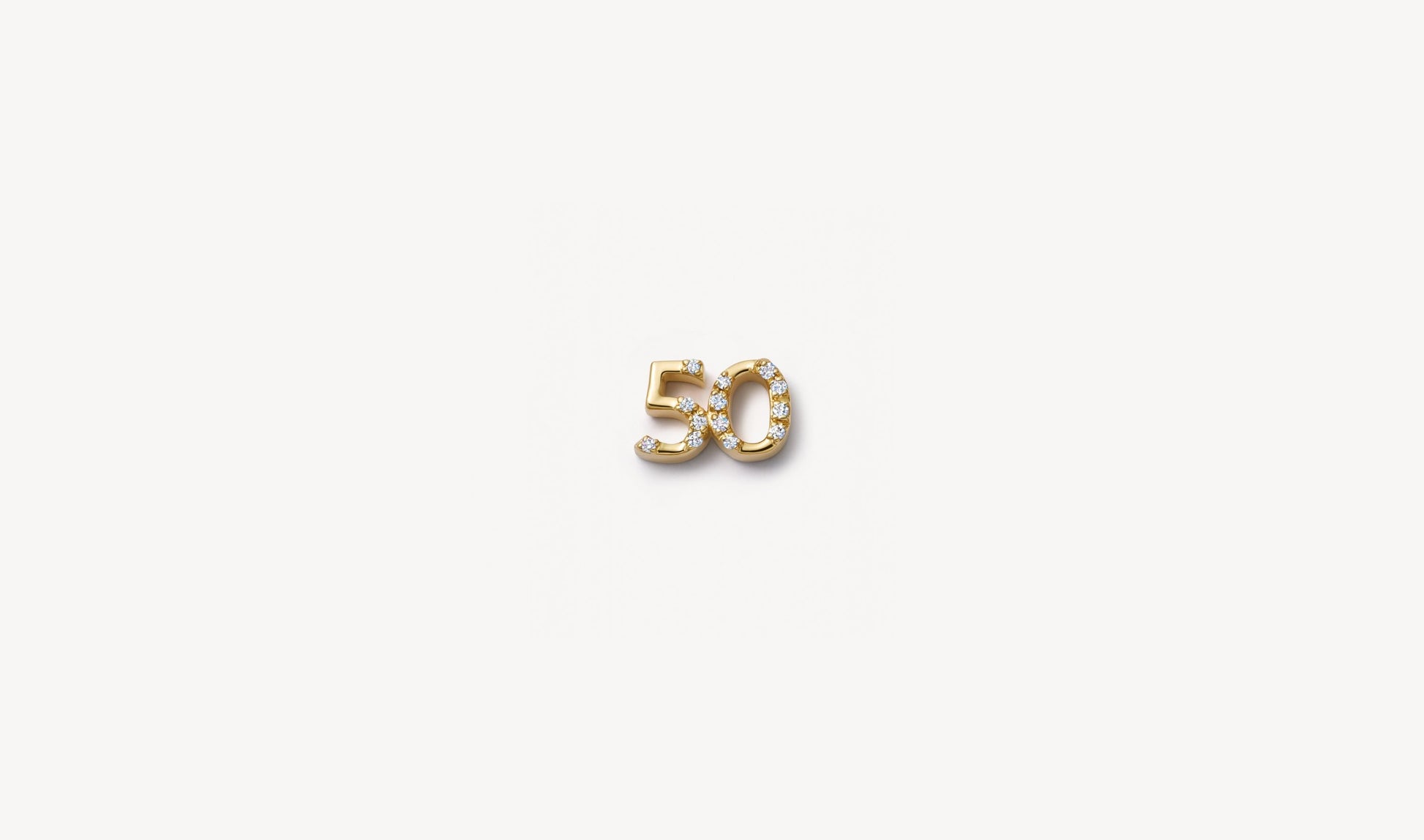 The gift that honours everything she's overcome. Our 50 Charm celebrates the woman who's loved unconditionally, seized opportunities, and built friendships that last a lifetime. Fifty, when experience becomes wisdom and confidence becomes unstoppable. Handcrafted in 18k solid gold with brilliant diamonds for the decade of doing exactly what she wants. Designed to fit inside our medium and large lockets.
