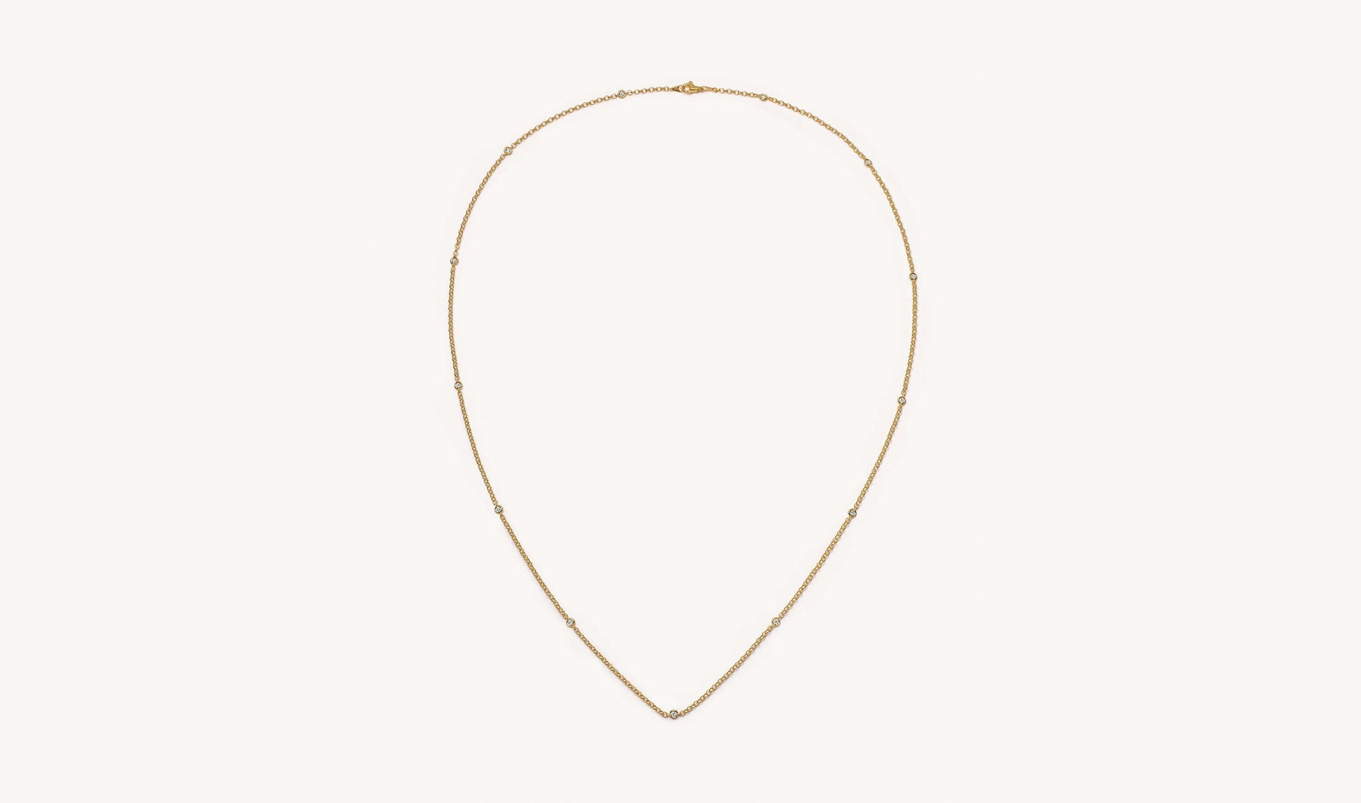 Crafted in 18k solid yellow gold and set with thirteen evenly spaced Top Wesselton VVS diamonds, this 26 inch necklace is as effortless as it is elegant. Handcrafted in Italy, it’s designed to move with you - layered, solo, dressed up or down. The kind of piece that quietly transforms a jewellery collection, it pairs beautifully with our Signature and Heirloom lockets, adding a touch of light to every day. An investment in forever, but yours to enjoy first.